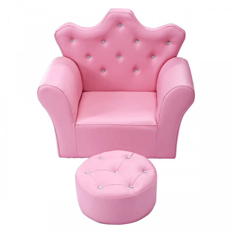 Upholstered Children's Princess Sofa Set with Ottoman and Diamond Accents for Boys and Girls